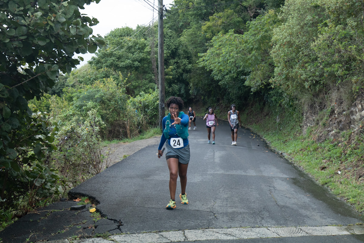 The race started and finished at Nicole’s in Brewer’s Bay. The runners out east end of Brewer’s Bay, ran along the Ridge Road up to Sage Mountain car park, and back down to Brewer’s Bay on the western side.